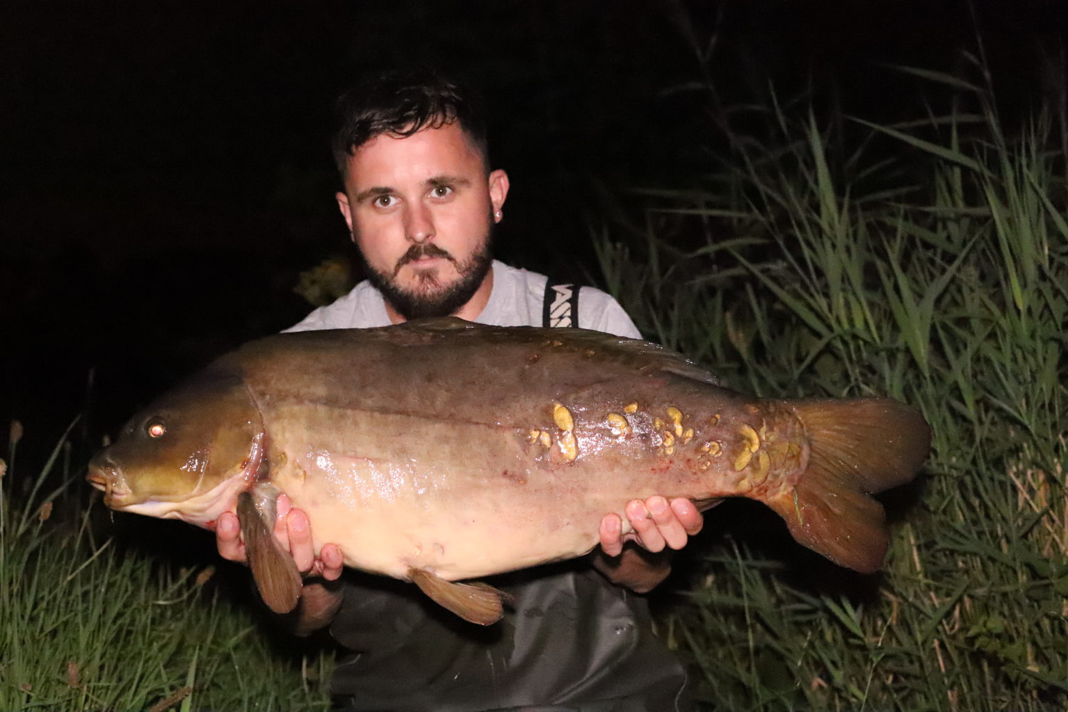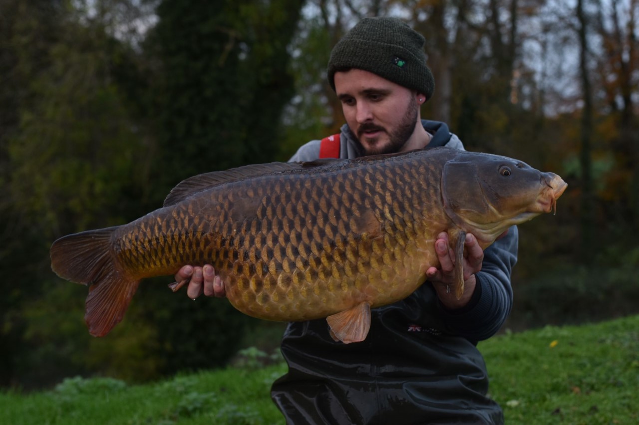 Finding them down the opposite end of the reservoir on my next trip I simply repeated the process and when they found the bait I had two bites within ten minutes, unfortunately losing the first one. The second fish felt heavy, It was one of the big commons, and I was absolutely made up when it finally went in the net. A quick message to the fishery owner confirmed it was a real rare one and at its top weight.