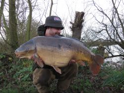 There were no more signs of fish as we entered into darkness. At around 2:30am, the odd liner started and just before 5am, the rod was away. The fish felt heavy, trying to pull me into the marginal snags. I didn’t give it any line and managed to tame the fish into the net. What happened next was a little strange, I had returned from Rainbow the week before having seen a friend bank two 60+ commons, so when this common laid in my net, my initial thought was that it was an upper 20, but after closer inspection, it showed all the characteristics of my target fish. I was rather puzzled. After hoisting her up on the scales she weighed in at 38.6lbs – I couldn’t quite believe it. I slipped her into the retainer and called Adam to take the pictures. While I waited for Adam, the other rod was away and as he walked round the corner, I had just slipped the net under a 20lbs mirror. After we had photographed the fish, Adam sprung it on me that I had to return the favour as he also had a 30lbs+ in the retainer. A quick pack up, fired the photos off for Adam and back up the A1, smiling from ear to ear. Make the effort and the rewards will be yours. Be lucky