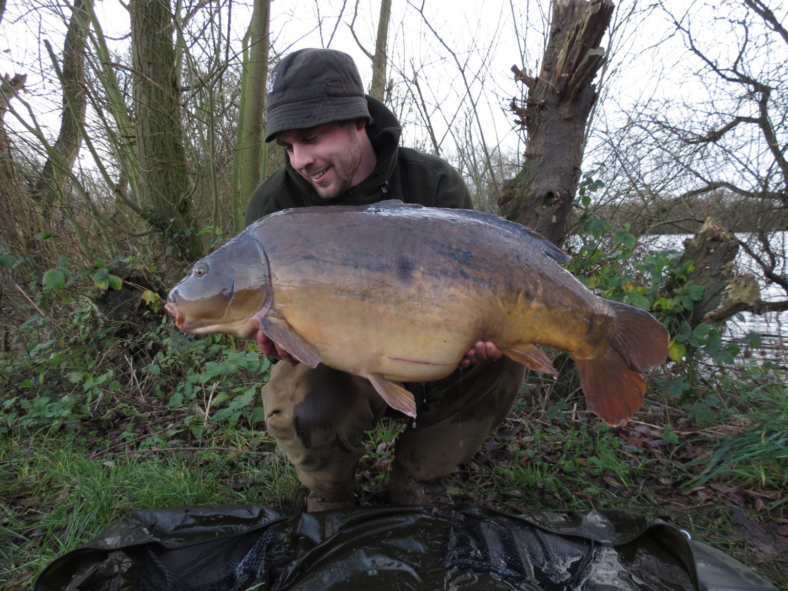 I put my tea down and went to admire my capture. I hoisted her up on the scales and she weighed in at a huge 39lbs. A stunning Northern lump and my biggest December carp to date. Happy Days!