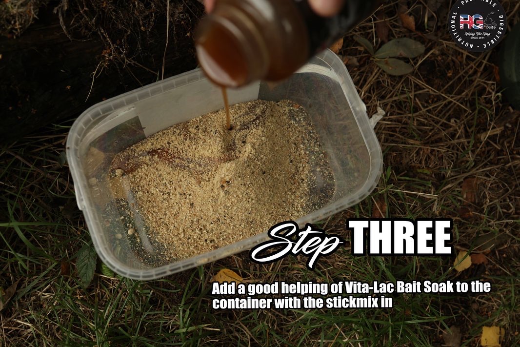 Step Three: Add a good helping of ‘Vita-lac’ bait soak to the container.