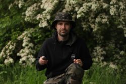 Let’s talk composition, this can be the difference between a good image and a great image. I always try and pick a backdrop that will enhance my image. It may sound daft but this can really elevate the overall result. This isn’t always possible of course, but if there’s something interesting there, use it to you advantage. Try and avoid having buckets, bivvy’s, fences etc in shot. Take a few test shots until you are happy with the backdrop and lighting. I then try and place myself within the chosen area, moving the unhooking mat around to give the desired result. If you can create some distance and separation between yourself and your backdrop this will help give that lovely smooth background that will help isolate you and the carp in the image.